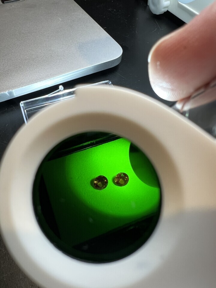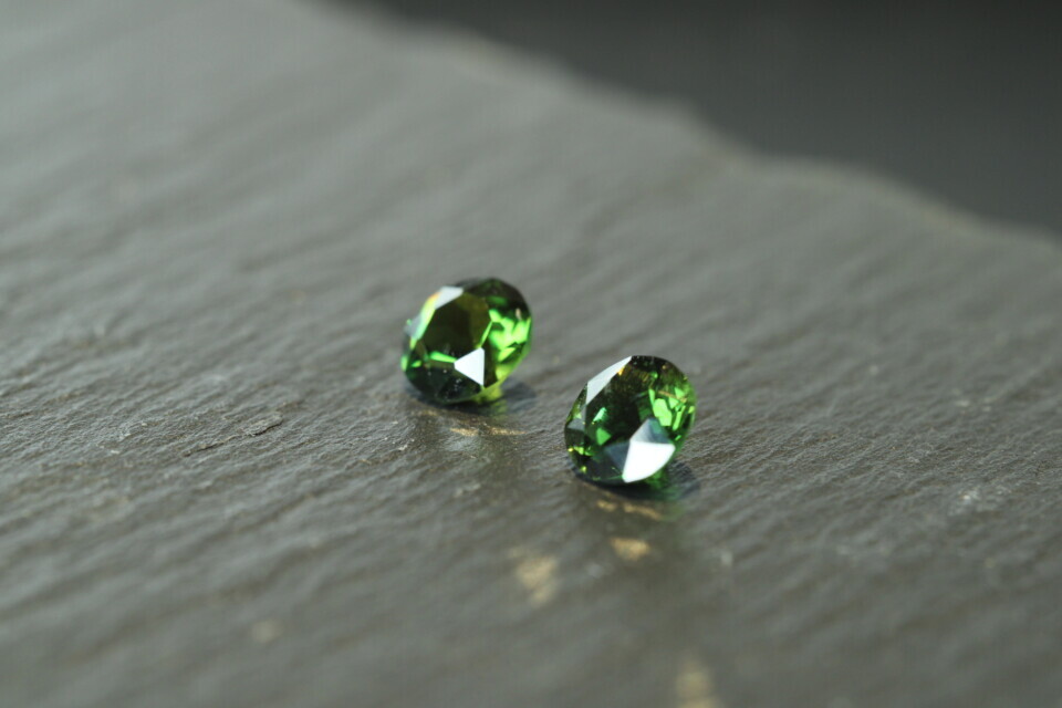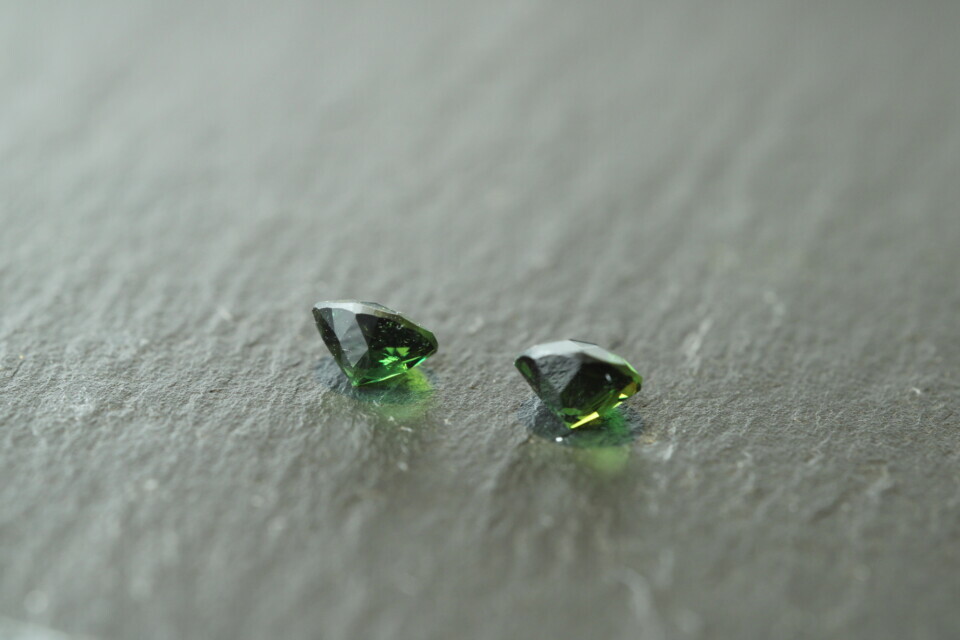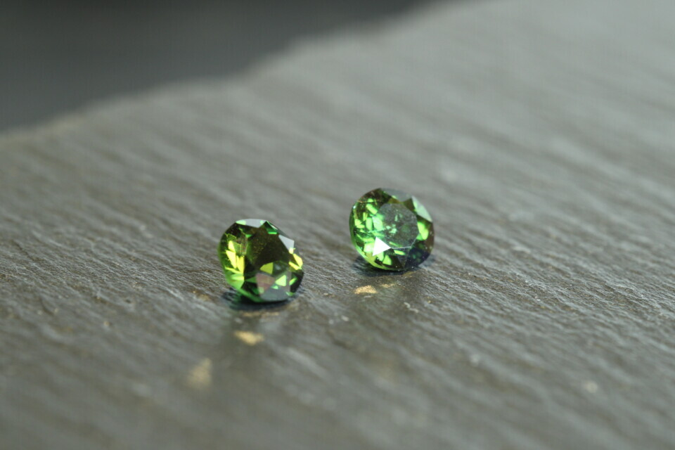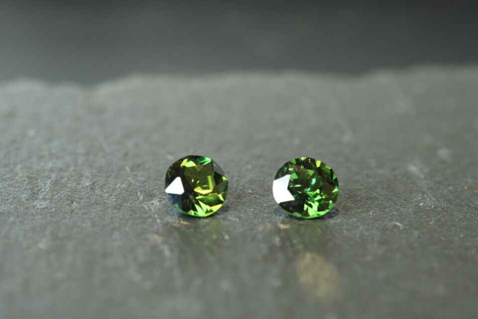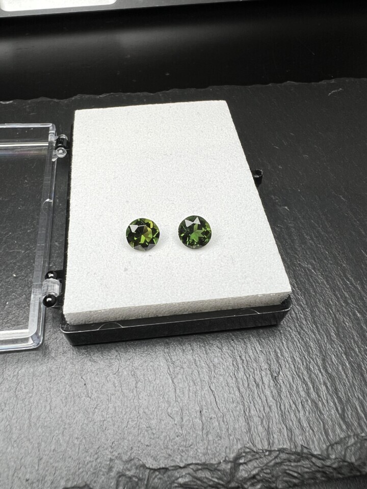 Zeldzame set van rond geslepen chroom toermalijnen. Hoewel de kleur iets van elkaar afwijkt, is dit een prachtige diepgroene set voor oorbellen. Deze chroom toermalijnen komen uit Tanzania en zijn ook daar geslepen.